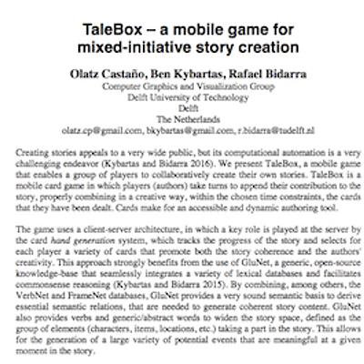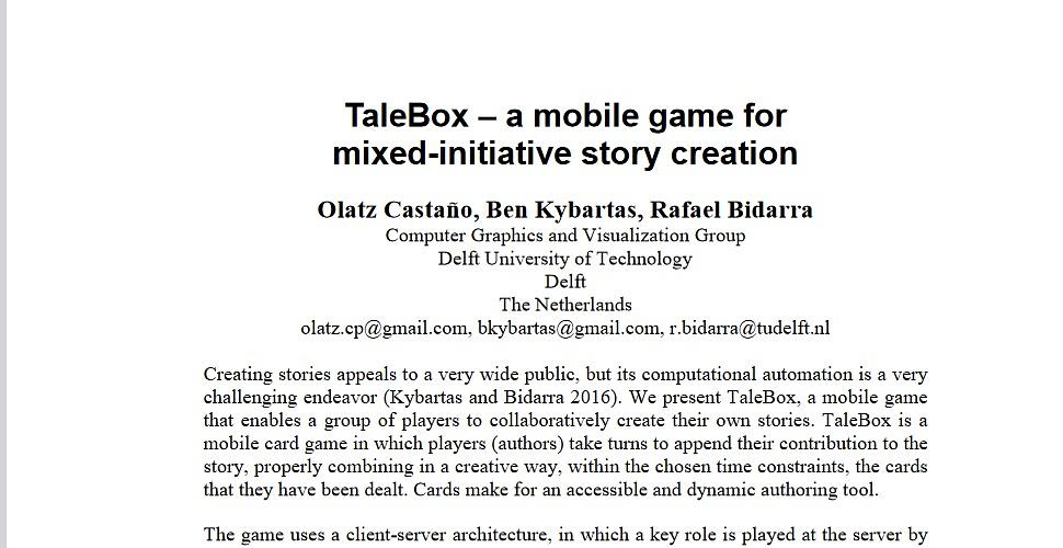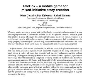 title = { TaleBox - a mobile game for mixed-initiative story creation },