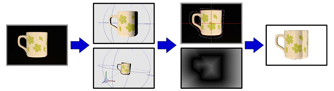This paper presents a texture projection and alignment method specifically tailored for objects with low geometric features. A common way to build virtual replicas is to acquire the geometry with a 3D scanner and model its reflectance properties (i.e. colors) by projecting photos onto the 3D surface. To correctly align each photo it is necessary to retrieve the camera's extrinsic matrix, which is usually achieved by optimization algorithms that match geometric features of the model with their corresponding ones on the photos. However, when dealing with cultural heritage artifacts or mechanical pieces, for example, some models inherently lack significant geometric detail. We propose a method to automatically extract these features from high resolution photos and register them in a sequential manner using a variation of the contour-based approaches. The algorithm requires minimum user intervention as only an initial guess of the camera's direction is required for each photo. In addition, we describe an improved formulation of the optimization method based on a smooth function that avoids typical local minima found in this scenario. The results are illustrated with high-resolution textured models produced by our system.