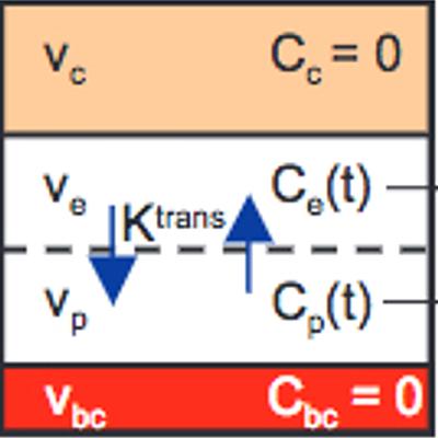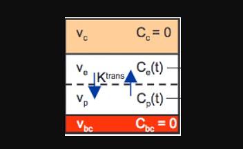 DCE-MR breast imaging is becoming an important modality as a problem-solving tool and in screening of high-risk patients. In DCE-MR a T1-weighted time series is recorded during the uptake of a contrast agent (CA: Gd-DTPA) that enables the assessment of voxel-specific dynamic tissue properties. Tumor malignancy often goes hand in hand with high vascularity and high vessel wall permeability because of angiogenesis; i.e. a large number of new vessels is formed at such a rate that their walls are not properly constructed and therefore highly permeable. These ‘malignant’ tissue characteristics affect the shape of the CA-uptake curve. The goal is to investigate the use of a pharmacokinetic two-compartment model (extended Kety [1]) in the context of dynamic analysis of CA-uptake curves as a contribution to automatic detection and characterization of breast cancer.